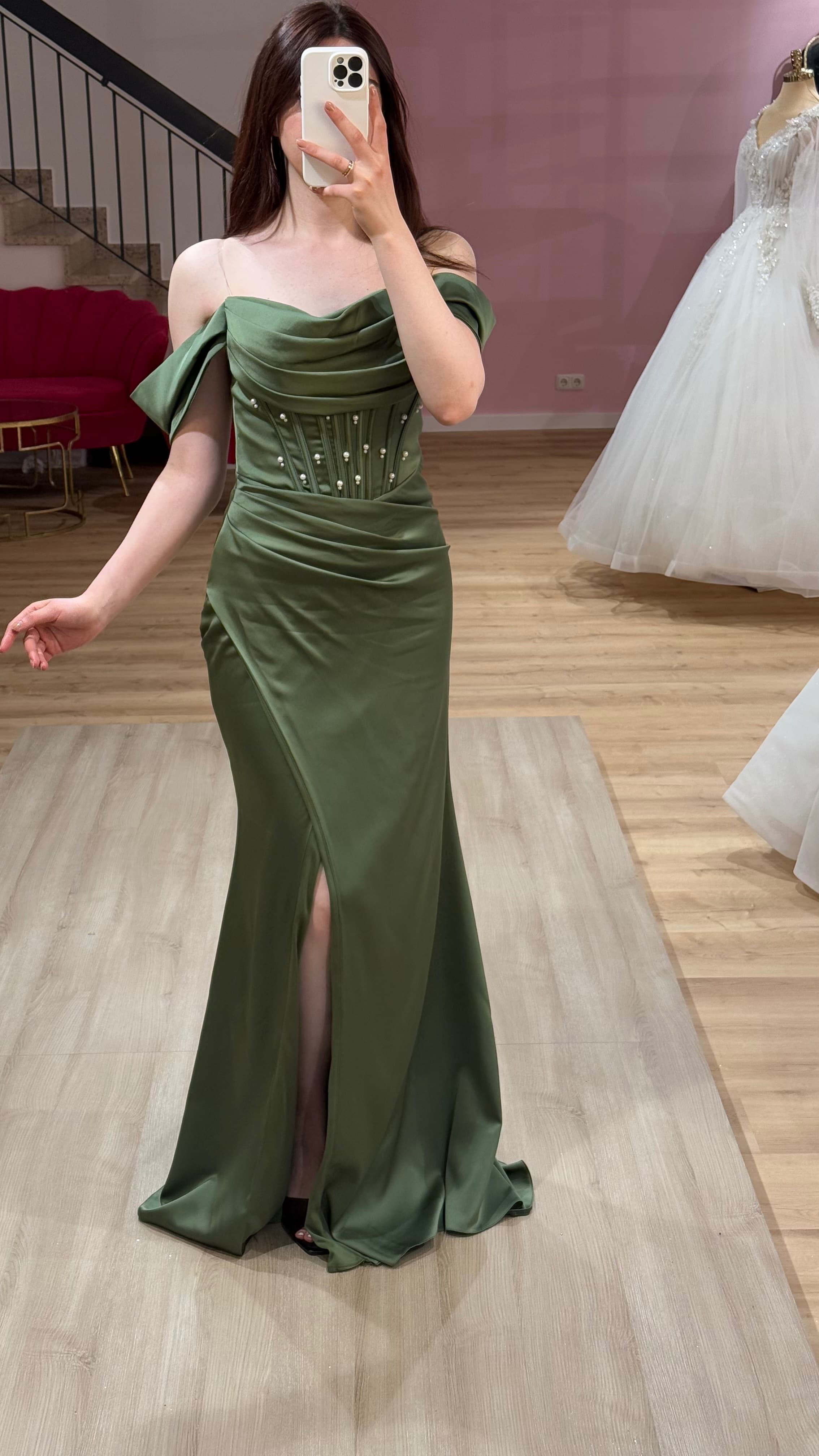 Abendkleid-Selma-Olivgrün