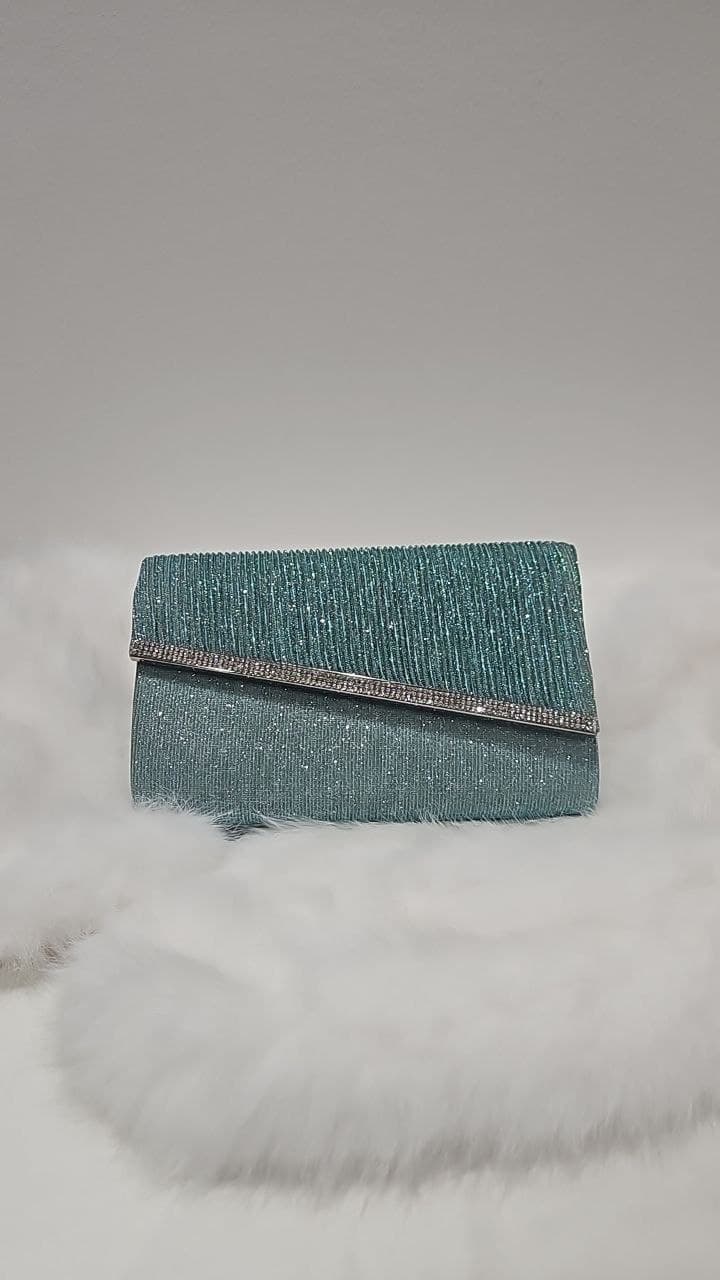 Glamouröse Envelope Clutch in türkis mit Glitzer